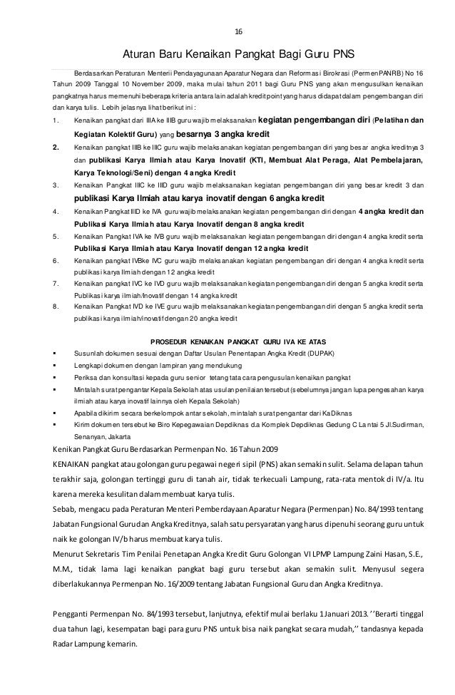Kenaikan Pangkat Guru Menurut Permenpan Rb Nomor 16 Tahun 2009
